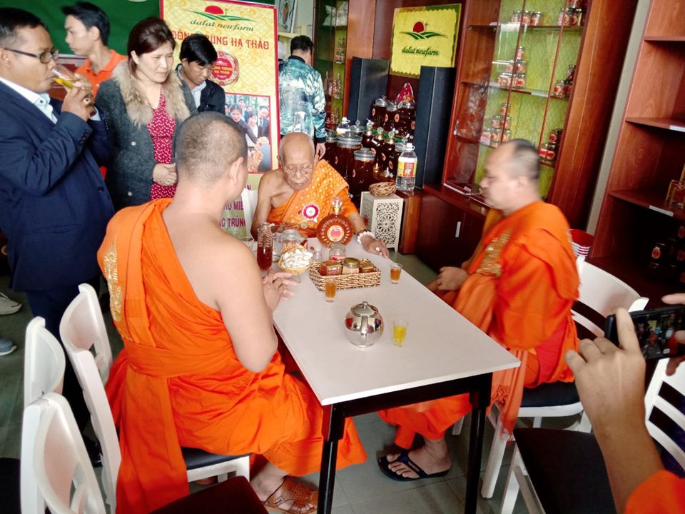Ngày 11/08/2019 Phái đoàn Vương quốc Campuchia do đức Đại Tăng Thống Tep Vong làm Trưởng đoàn đã đến thăm quan khu du lịch canh nông nuôi cấy đông trùng hạ thảo DaLatNewfarm Tại 267 Nguyên Tử Lực, F8, Đà Lạt, Lâm Đồng.